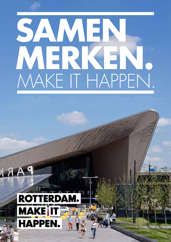 Die vraag hebben we onszelf gesteld, omdat we het gevoel hadden dat daarin de oplossing zat. Wat maakt Rotterdam nou Rotterdam? Rotterdammers maken Rotterdam! Dus zijn we op zoek gegaan naar de mensen die het verschil maken en hebben gemaakt. Mensen die de ruimte zien en pakken. Types die niet om toestemming vragen. Die tegen de stroom inzwemmen. Tomeloos. Zij zijn onze inspiratie geweest om uiteindelijk Make it happen op een flip-over te schrijven. De mentaliteit is het merk. De Rotterdamse mentaliteit.
